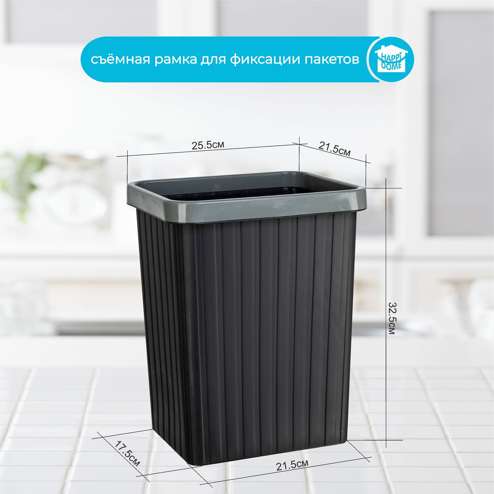 Мусорное ведро "HAPPIDOME", пластик, 13 л, прямоугольное интересное: