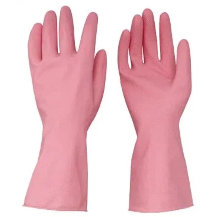 Перчатки хозяйственные резиновые средней толщины розовые М, WATTS