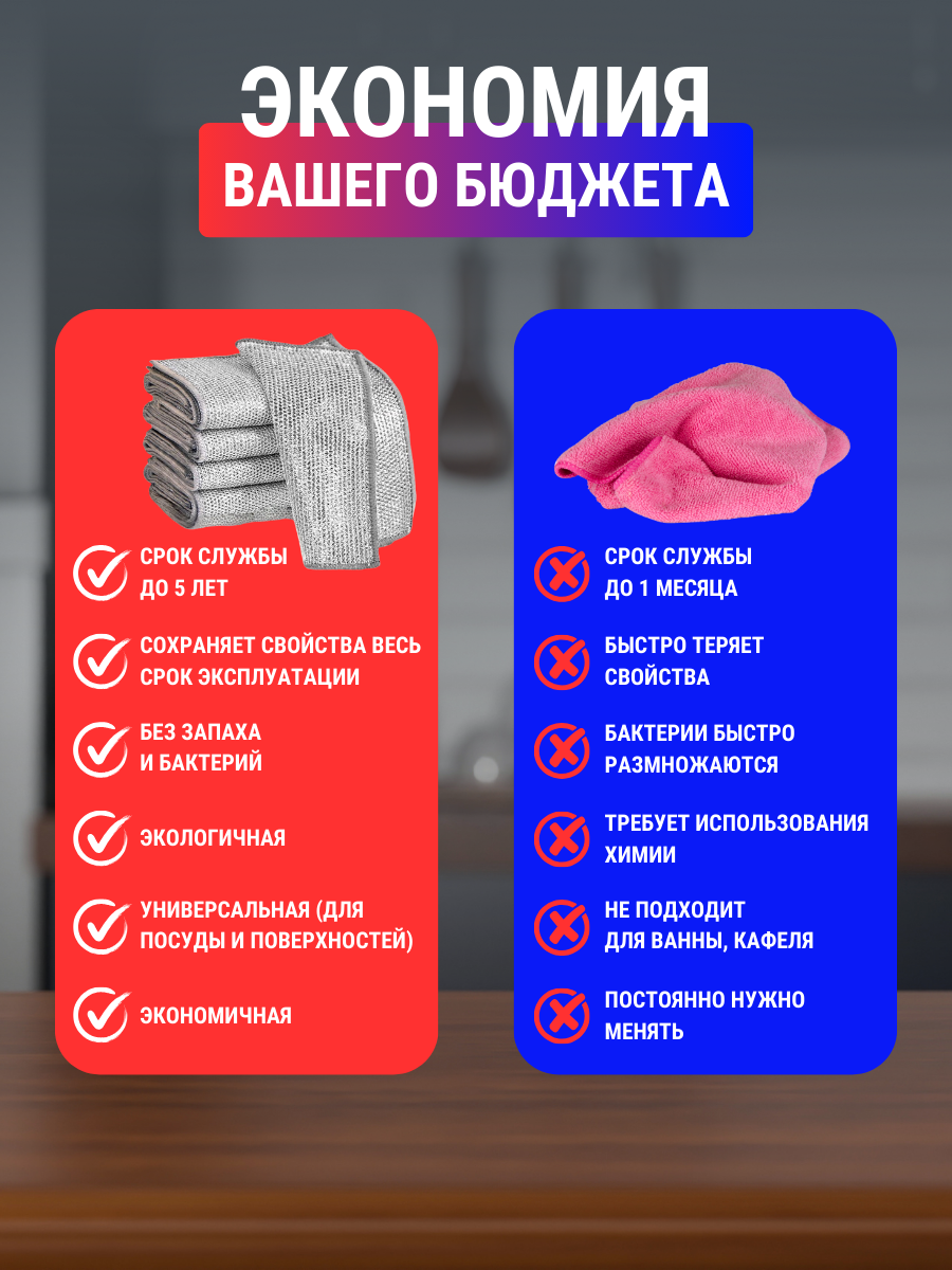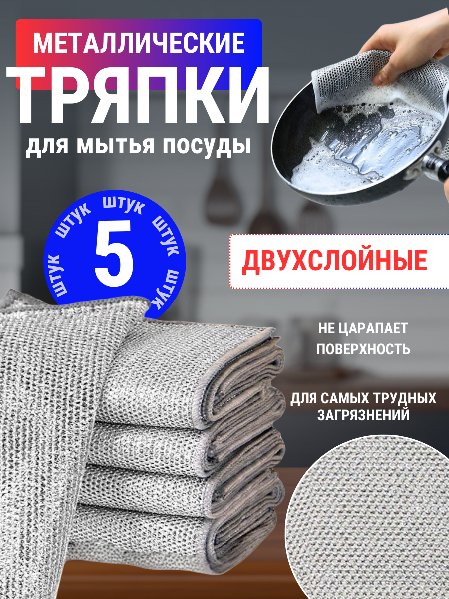 Тряпки металлизированные для мытья посуды двухслойные, 5 штук 20х20 см интересное:
