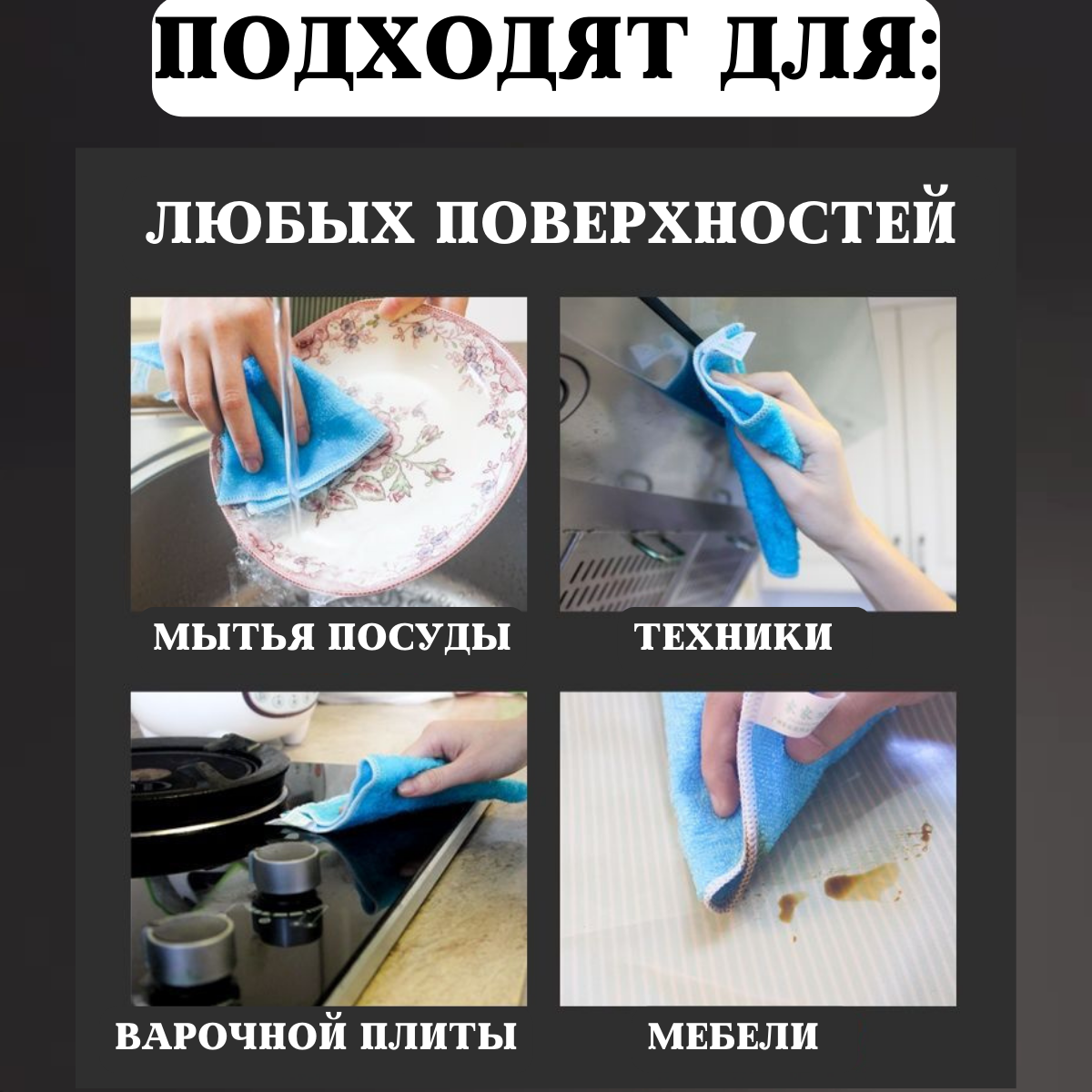 Умные салфетки для уборки без разводов универсальные тряпки