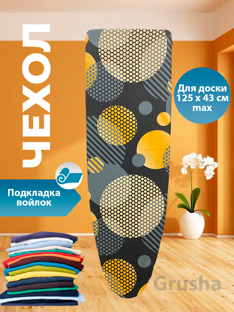 Чехол для гладильной доски с подкладкой из войлока, 125х43 см, серый