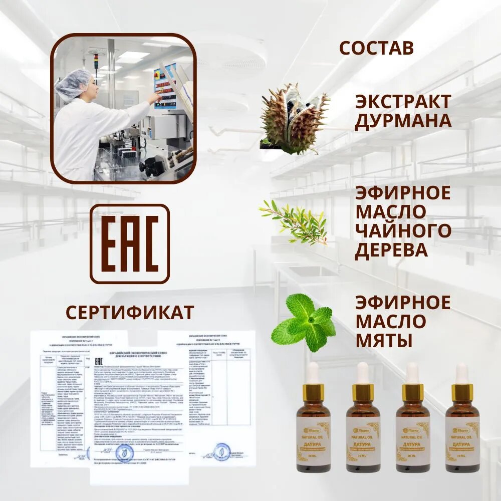| Состав | 100% натуральный масляный экстракт дурмана обыкновенного, эфирное масло чайного дерева, эфирное масло мяты |
