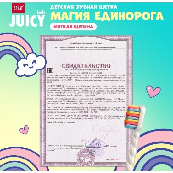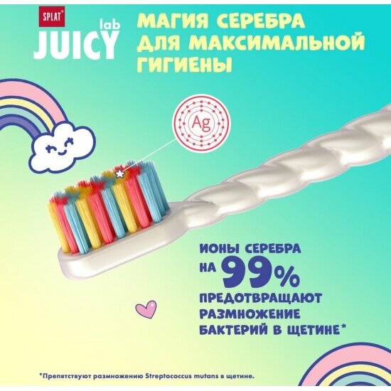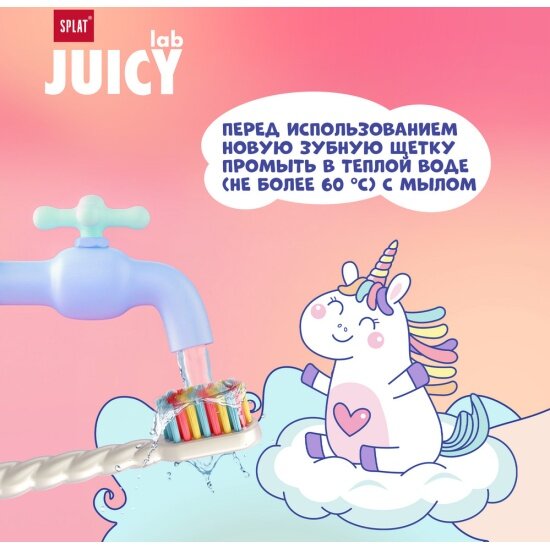 СохранитьДетская зубная щетка Splat JUICY LAB Магия единорога с ионами серебра, жемчужная интересное: