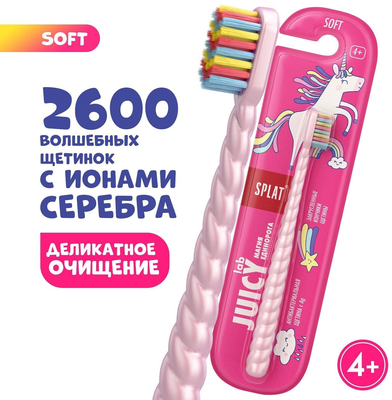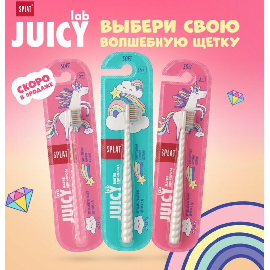 Детская зубная щетка серии JUICY LAB «SPLAT UniMagic / Магия единорога» с ионами серебра. в ассортименте, (2 шт)