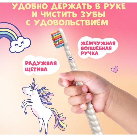 Зубная щетка JUICY LAB "Магия единорога", для детей, жемчужная, от 5 лет