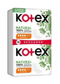 Прокладки женские гигиенические Kotex Natural Normal, 16 шт