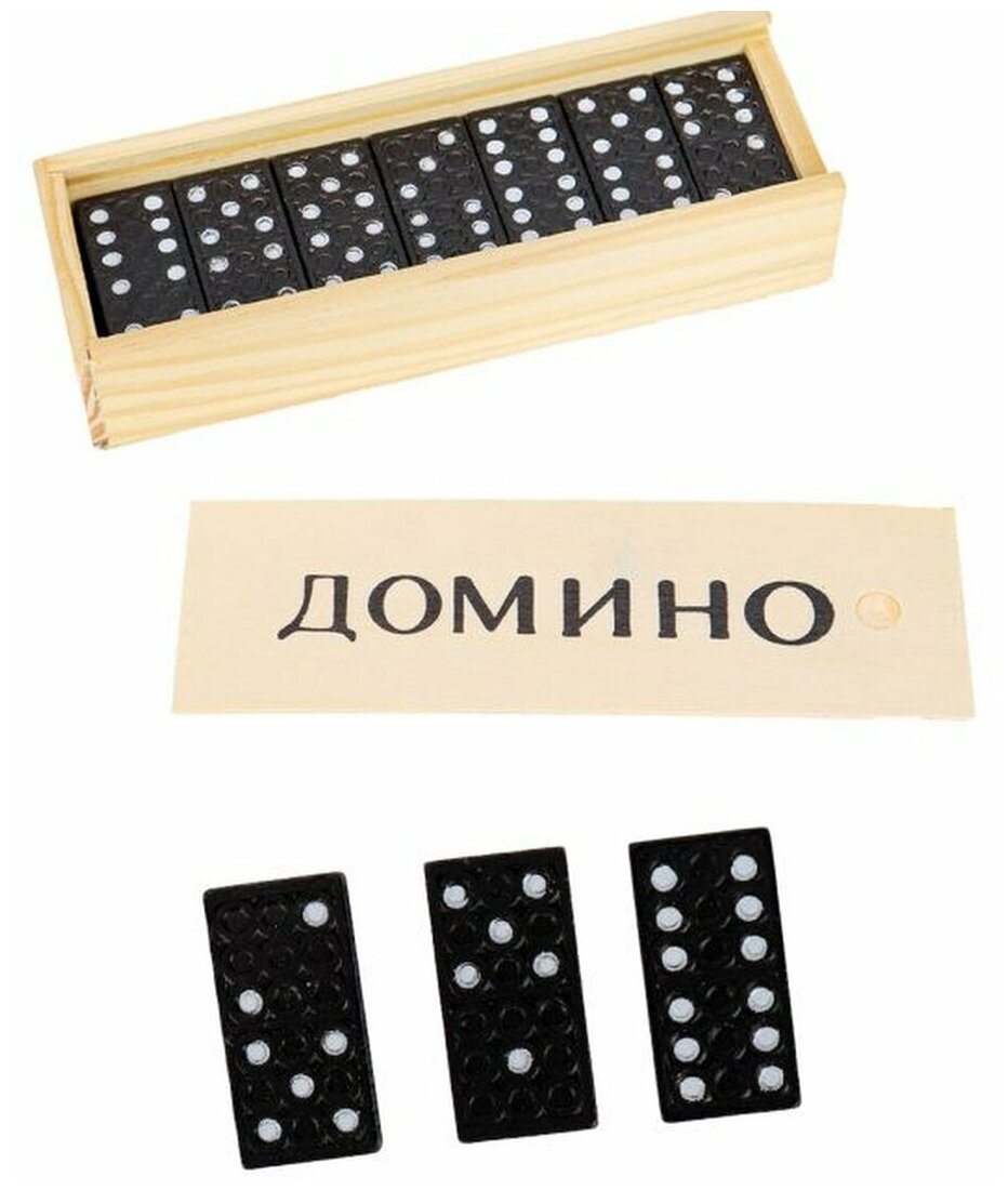 Игра настольная Домино, пластиковые фишки, в деревянной коробке, размер: 14x5см интересное: