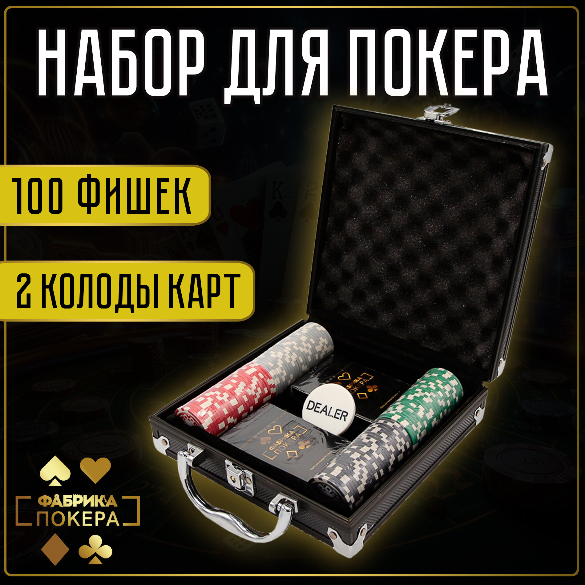 Фабрика Покера: Набор из 100 фишек для покера с номиналом в кейсе интересное: