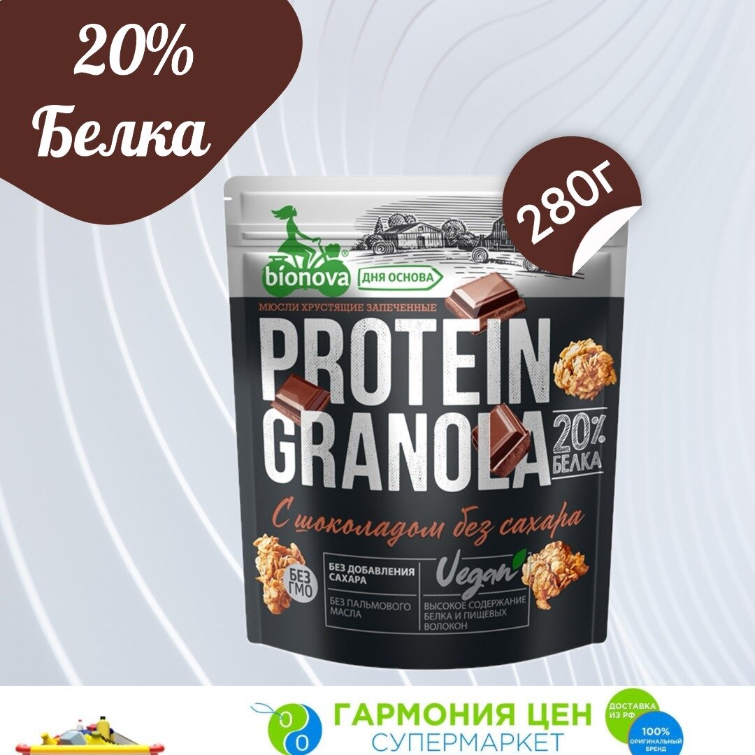 Купить BIONOVA Мюсли Хрустящие Запеченные Гранола Протеиновая Шоколад без Сахара 280 гр