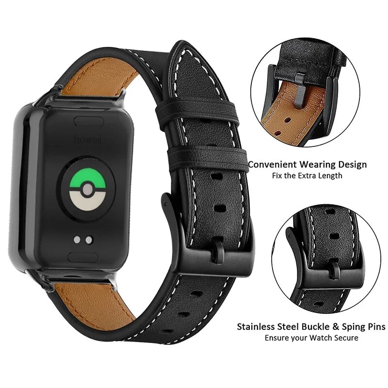 Кожаный ремешок GETBAND для Mi Band 8 Pro, black-black adapter, For Mi Band 8 Pro