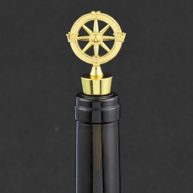 Декоративная многоразовая пробка для винной бутылки в форме Компаса из металла, подарок на моряку или путешественнику, в подарочной упаковке