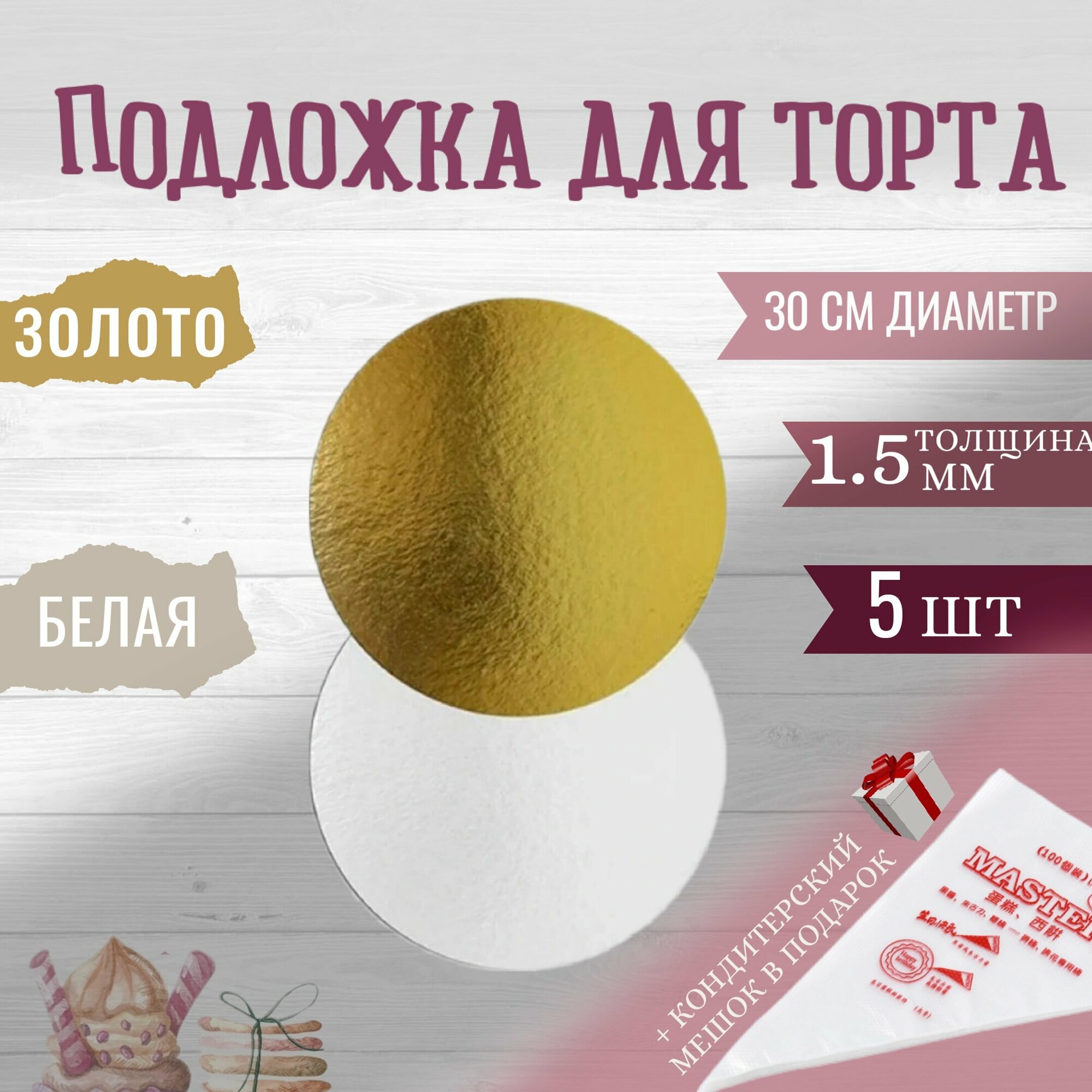 СохранитьПодложка для торта, пирожных, десертов / кондитерские круглые 30 см, золото/белый жемчуг, 5штук интересное: