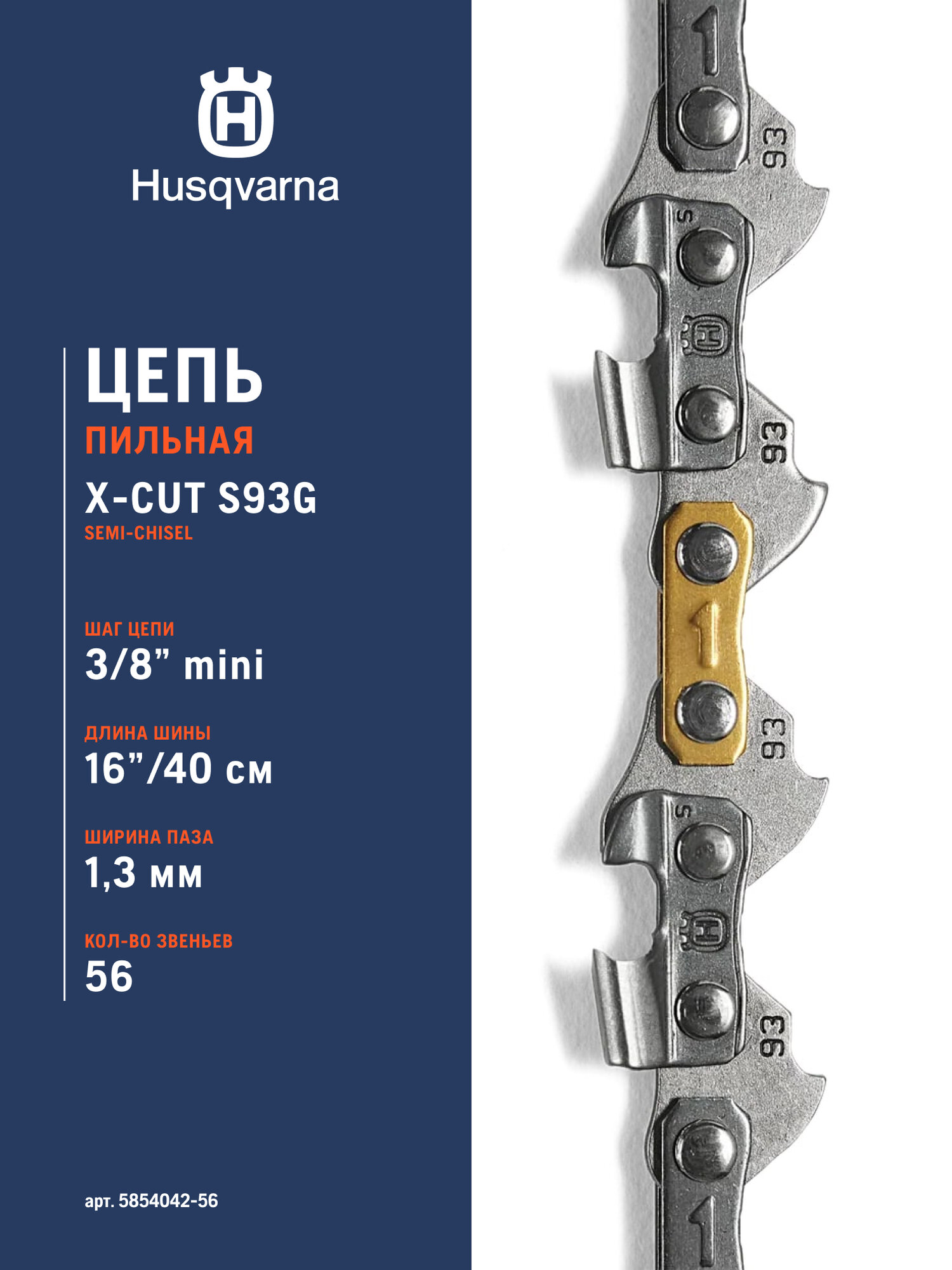 Цепь Husqvarna X-Cut S93G (16", 3/8"mini, 1.3, 56), 5854042-56