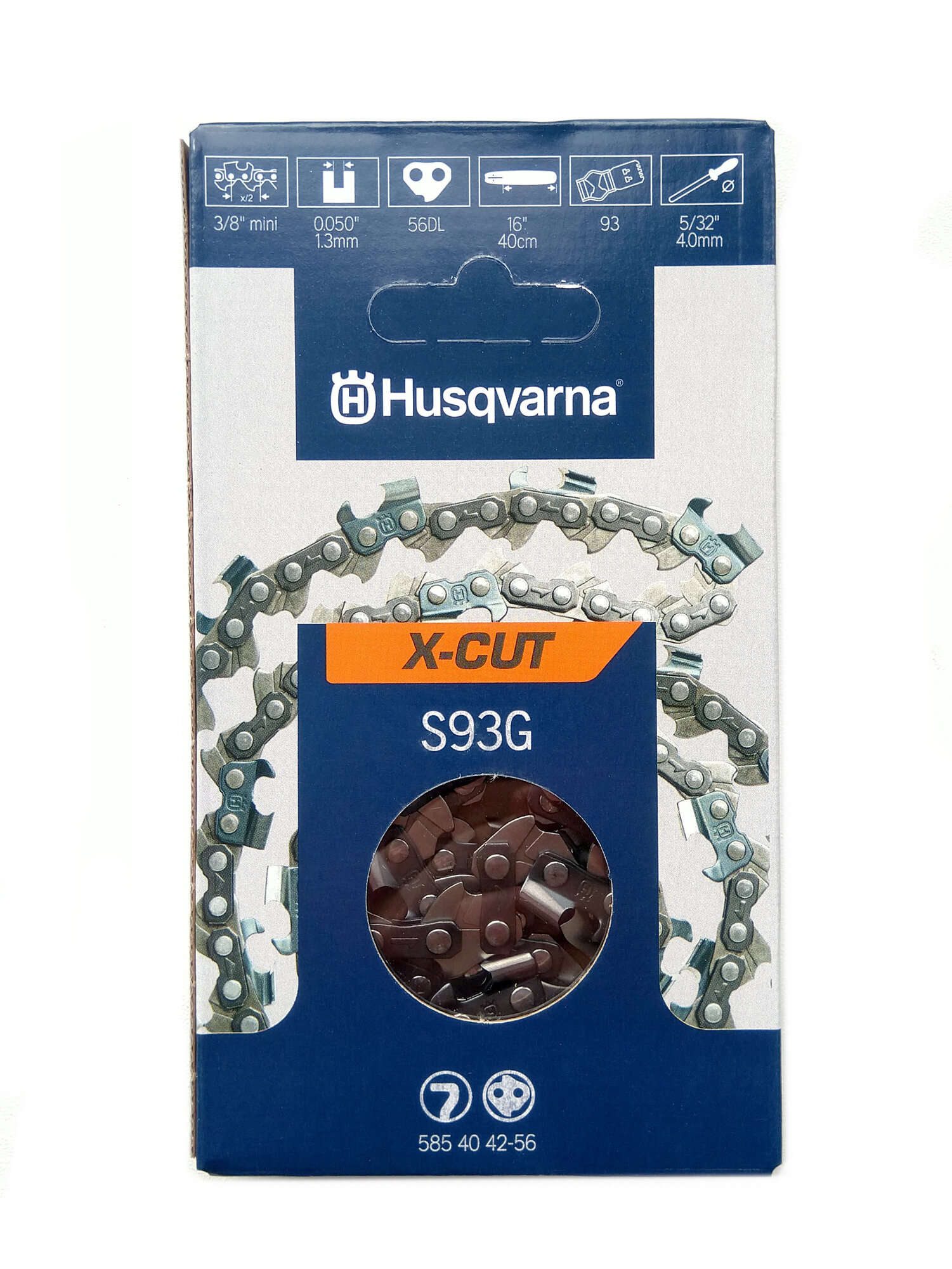 Купить Цепь Husqvarna X-Cut S93G, 16"/41см, 3/8"mini, 1.3 мм, 56 зв, для бензопил 120MII/236/240/135/140