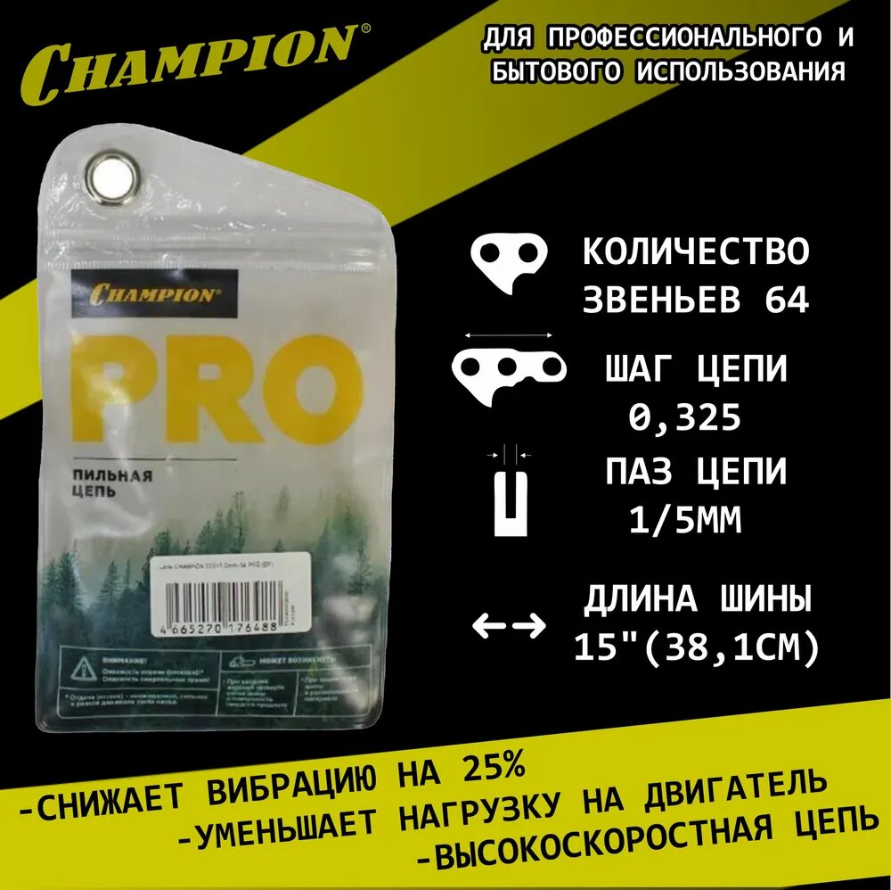 Цепь Champion B058BP64E, 38см, шаг 3/8", 64 звена интересное: