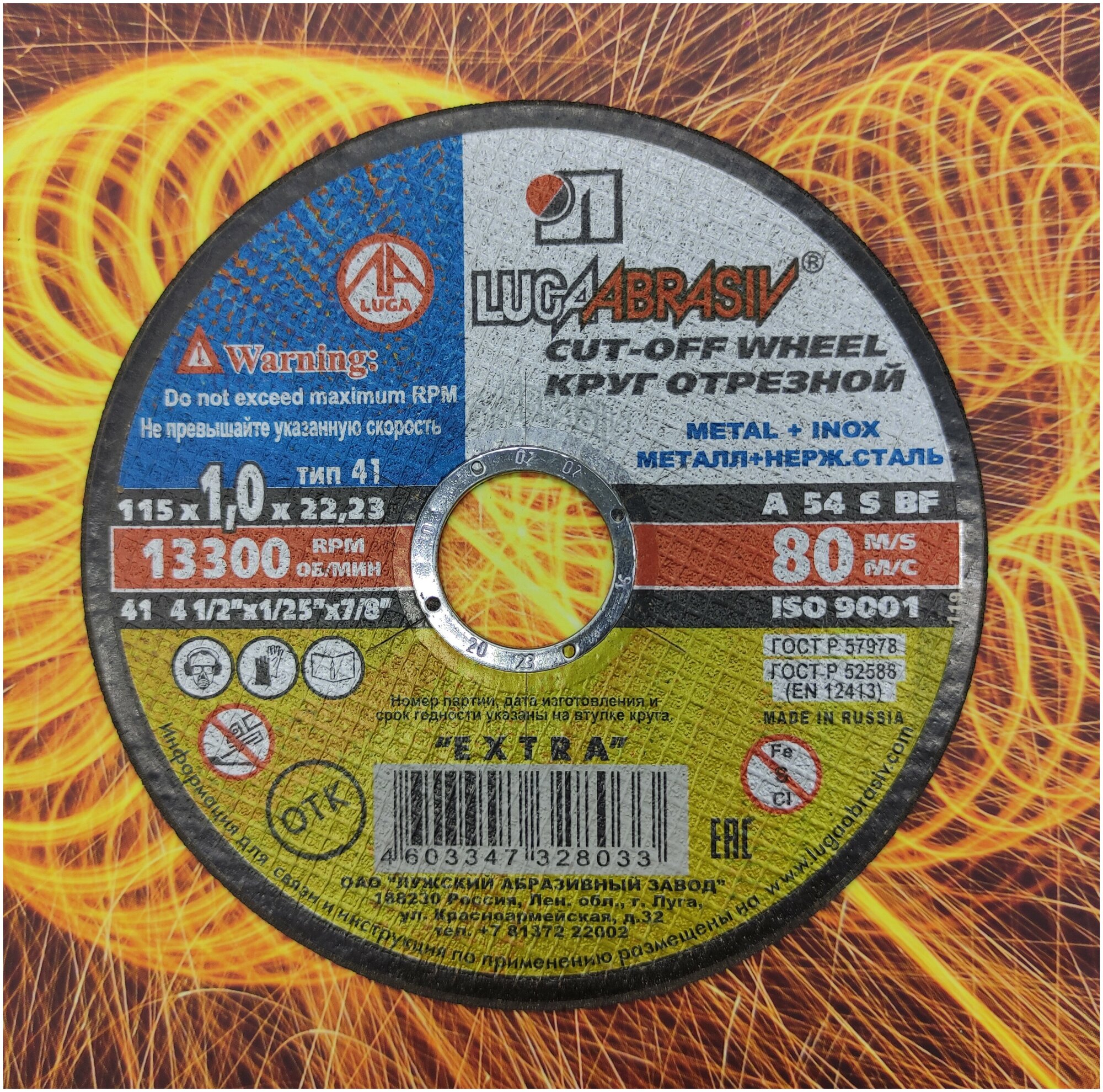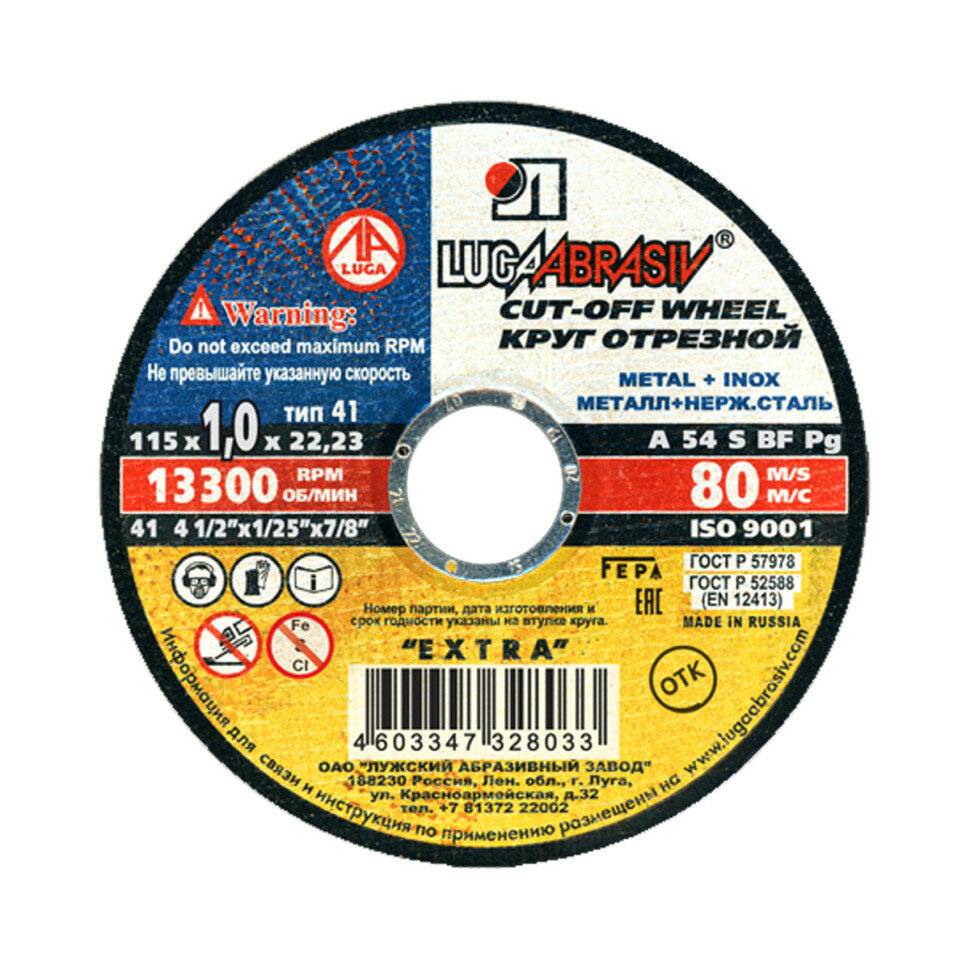 LUGAABRASIV Круг отрезной по металлу "Луга" A 30 S BF 80 (14А БУ), 230 х 2.5 х 22 мм