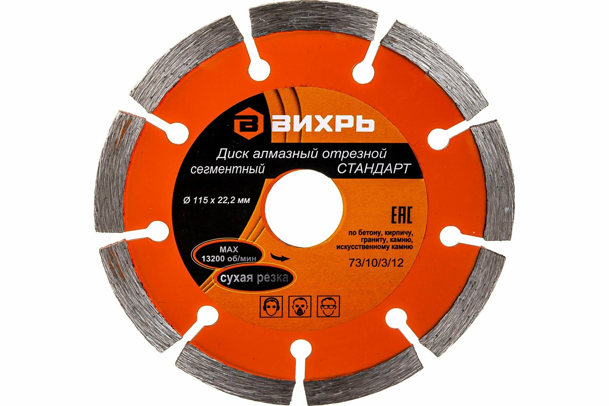 Диск алмазный Вихрь стандарт, отрезной сегментный 115 х 22,2 мм, сухая резка, 73/10/3/12