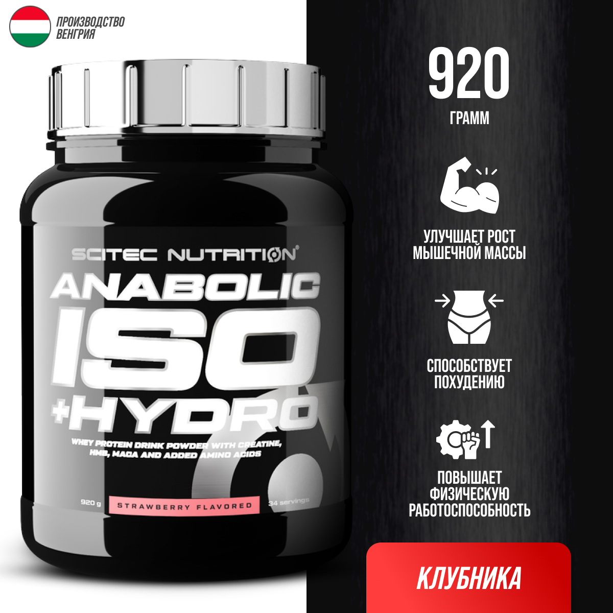 СохранитьКомплекс сывороточного изолята и сывороточного гидролизата Scitec Nutrition Anabolic Iso+Hydro 920g (strawberry) интересное: