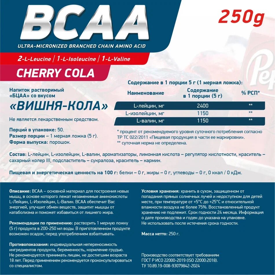 BCAA GeneticLab 2:1:1, вишня-кола, 250г интересное: