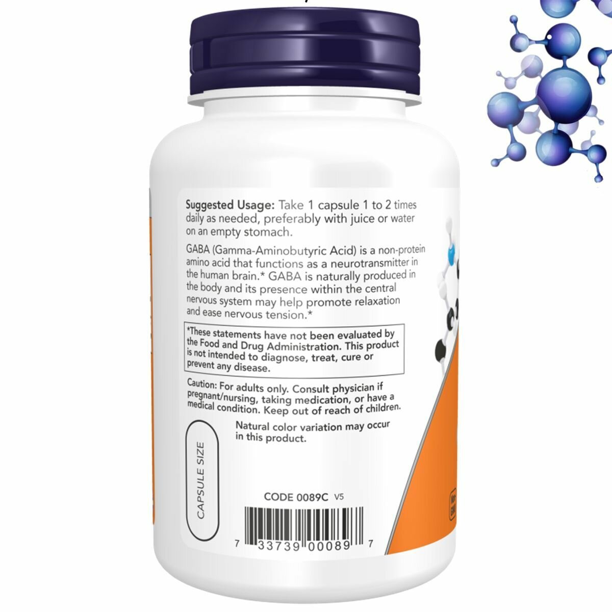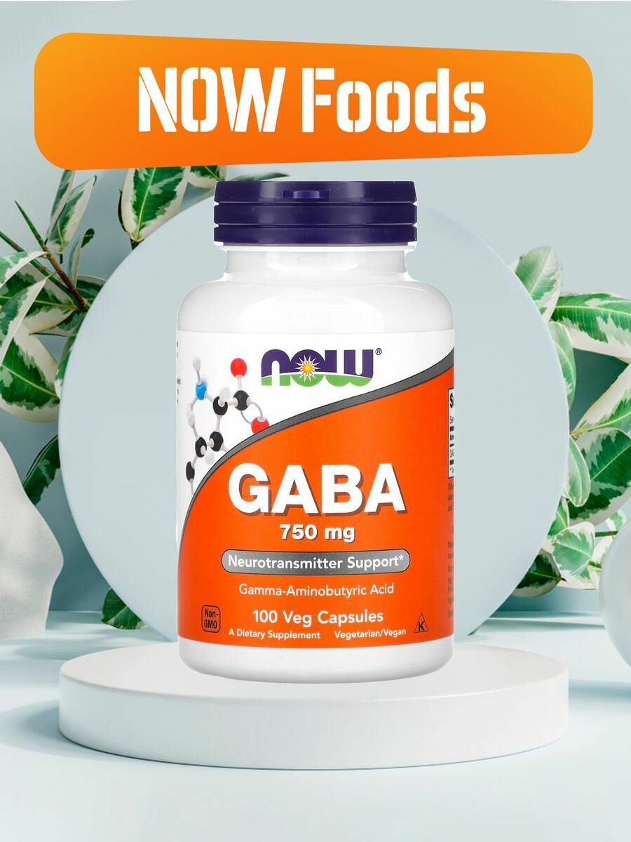 NOW GABA 750 mg, габа гамк (гамма-аминомасляная кислота) 100 капсул
