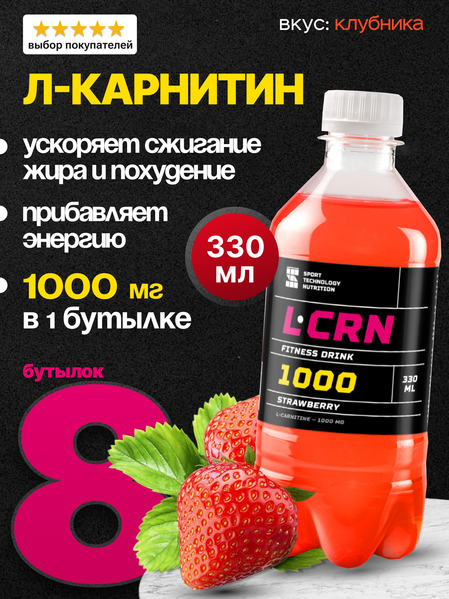 Купить Л-карнитин, жиросжигатель, L-Carnitine 1000 8 шт по 0,33 л клубника, спортивное питание, аминокислоты для коррекции веса, для похудения