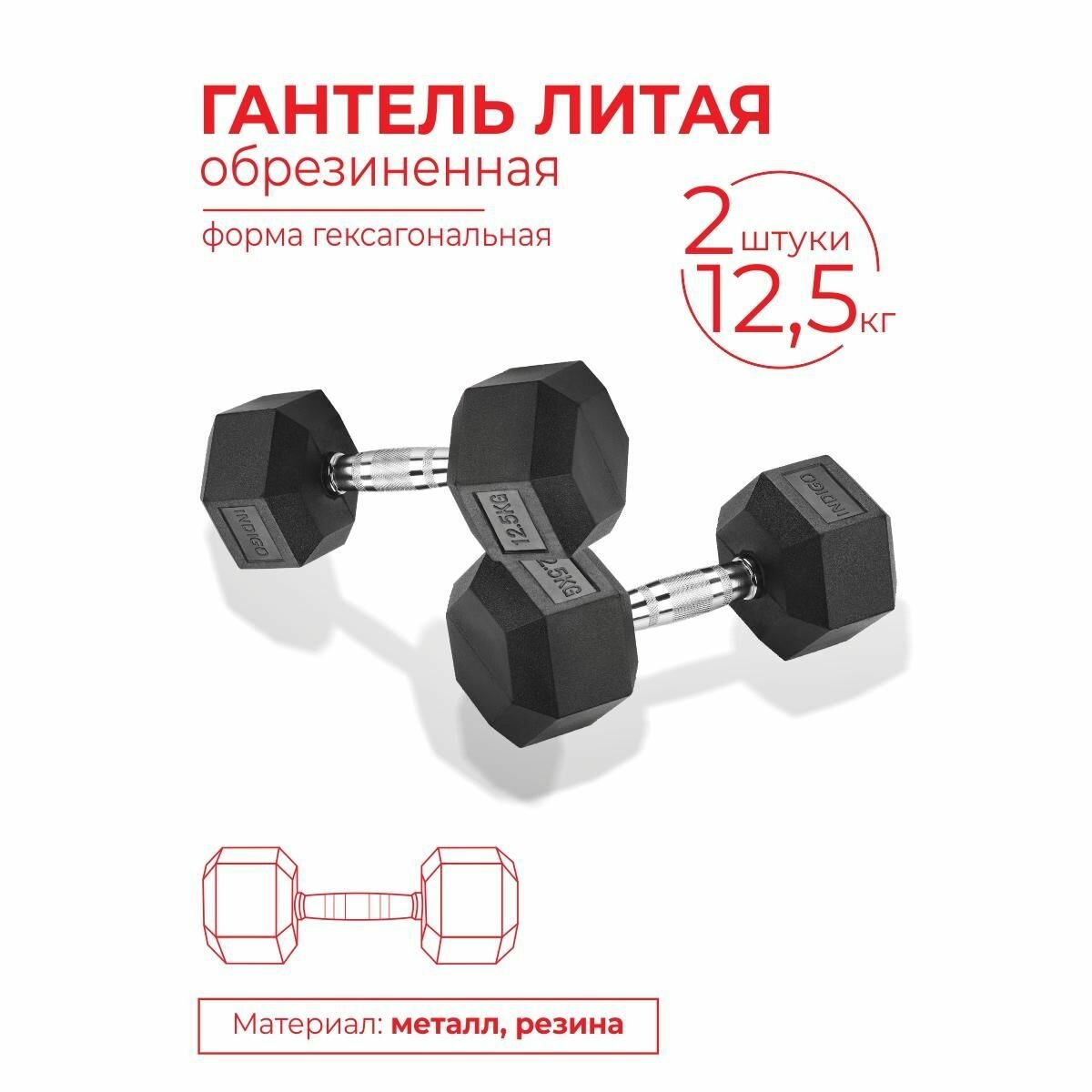 Гантели литые обрезиненные INDIGO, гексагональные, 2шт по 12.5кг интересное:
