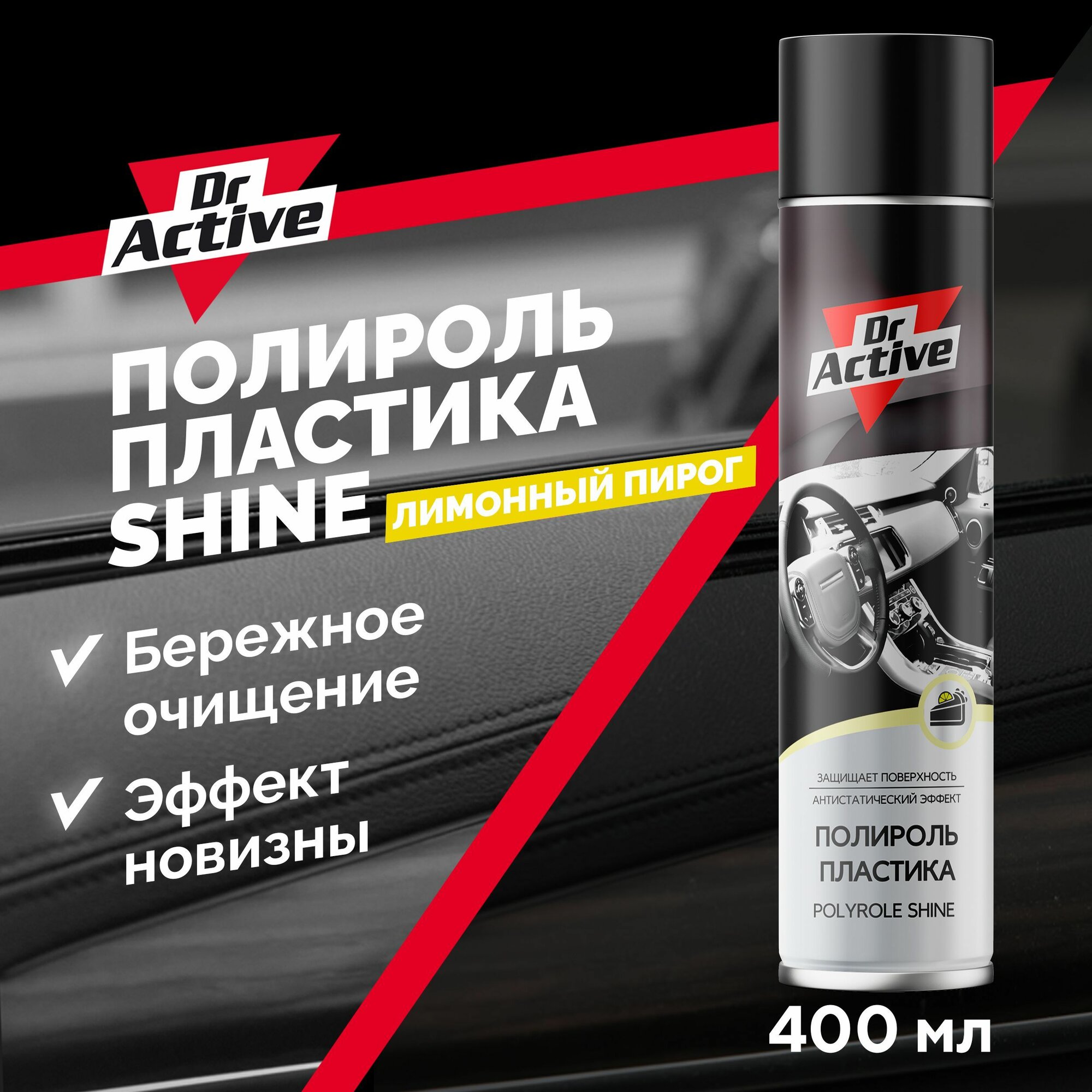 Полироль для пластика авто салона глянцевый Dr. Active "Shine" с ароматом лимонного пирога, 400 мл аэрозоль