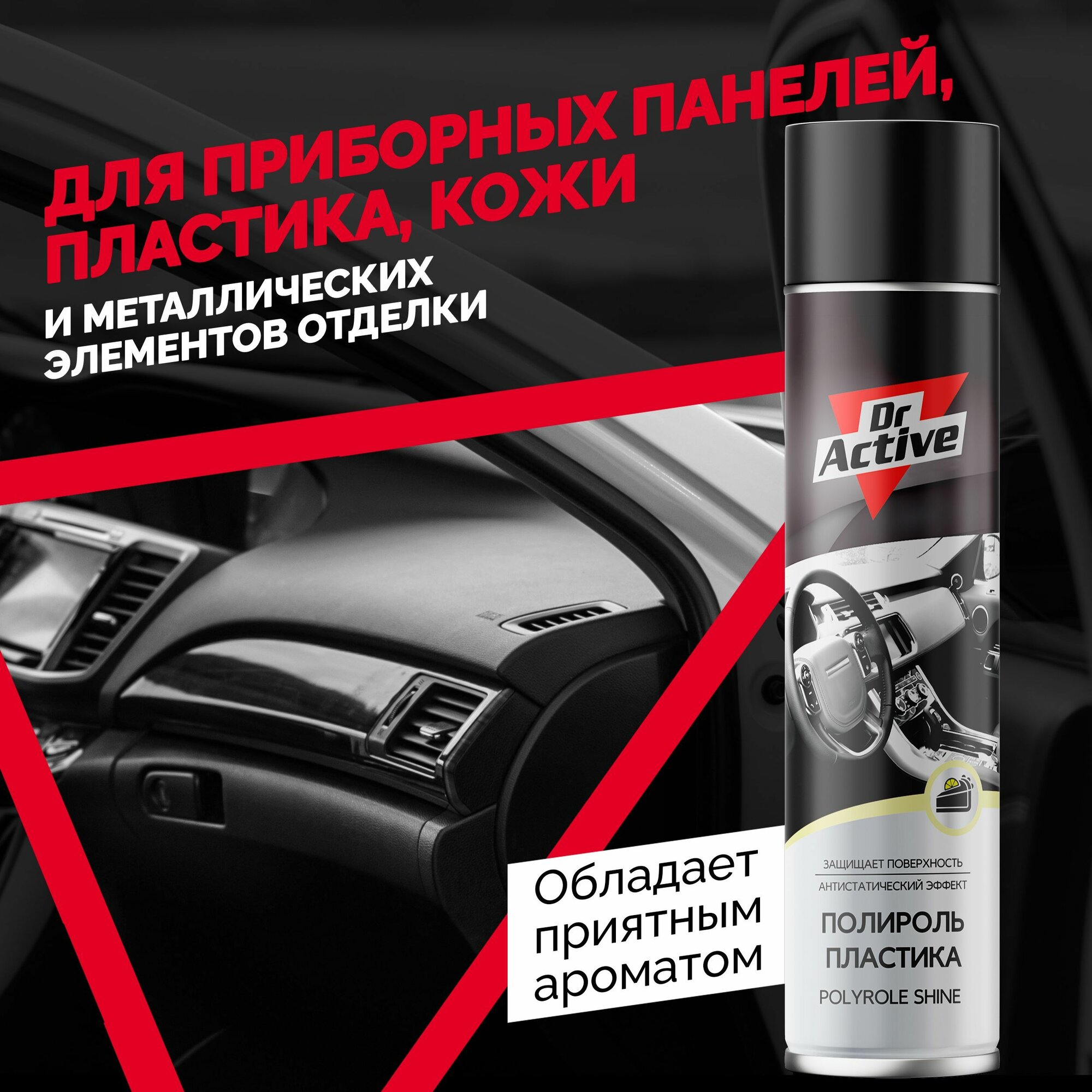 Полироль для пластика авто глянцевый Dr. Active "Shine" с ароматом лимонного пирога, 1000 мл аэрозоль