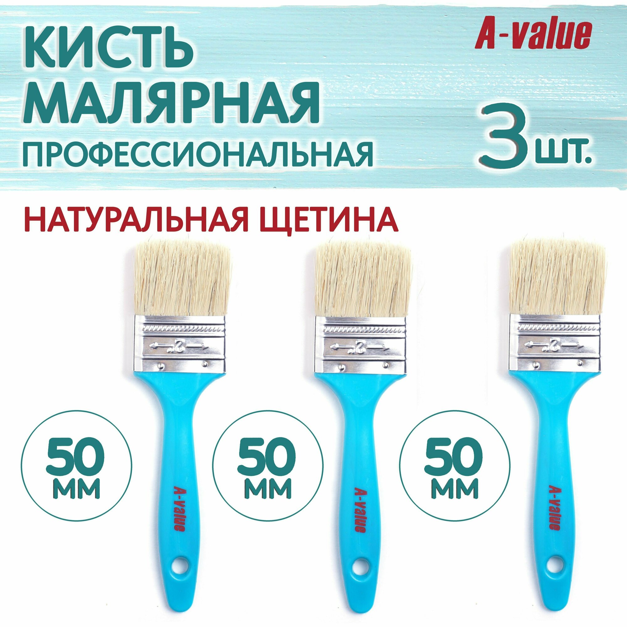 Купить Кисть малярная плоская 50 мм, набор 3 шт, из натуральной щетины, пластиковая ручка