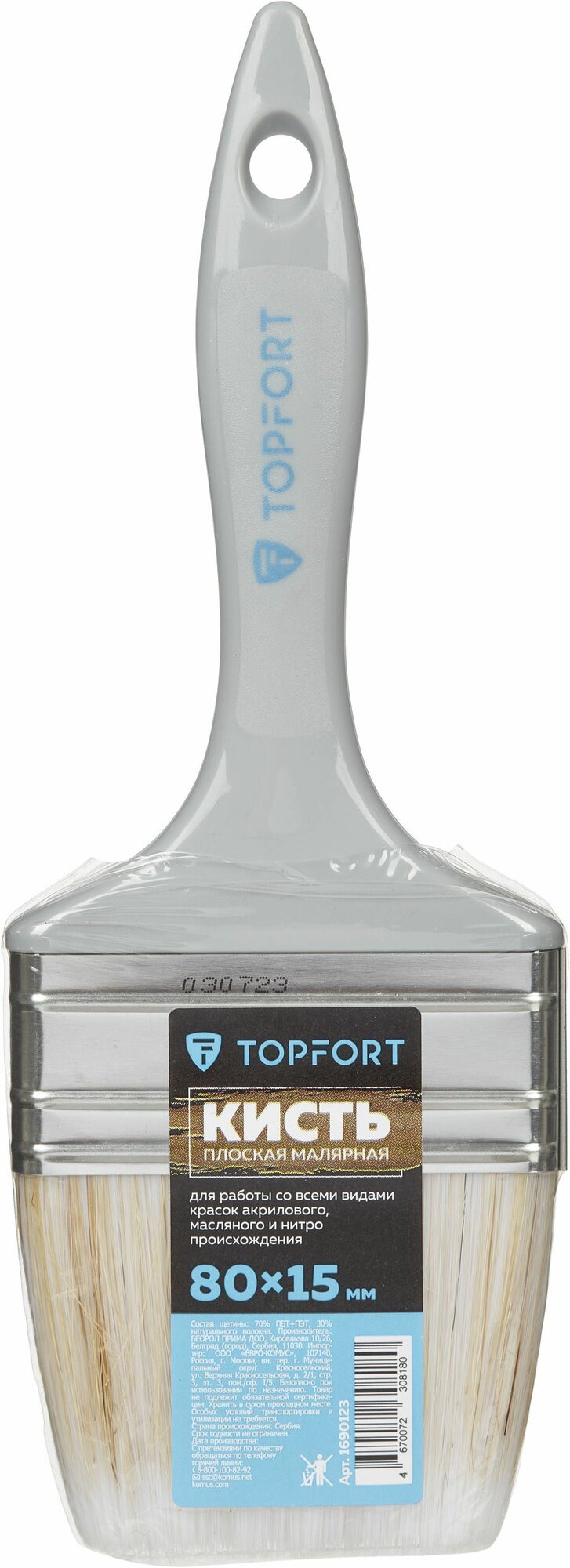 Кисть малярная TOPFORT, плоская, 30х15, из смешанной щетины, серая