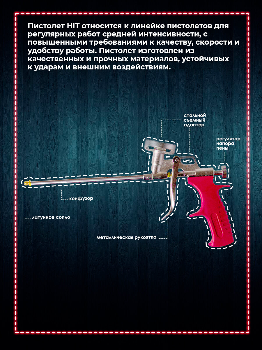 Пистолет для монтажной пены Профессиональный Левша HIT металлический корпус, регулятор подачи пены интересное: