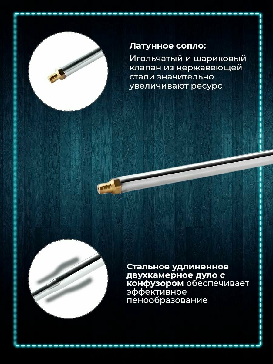 | Особенности | игольчатый клапан, камера пенообразования, тефлоновое покрытие, удлиненный ствол, утолщенный ствол |