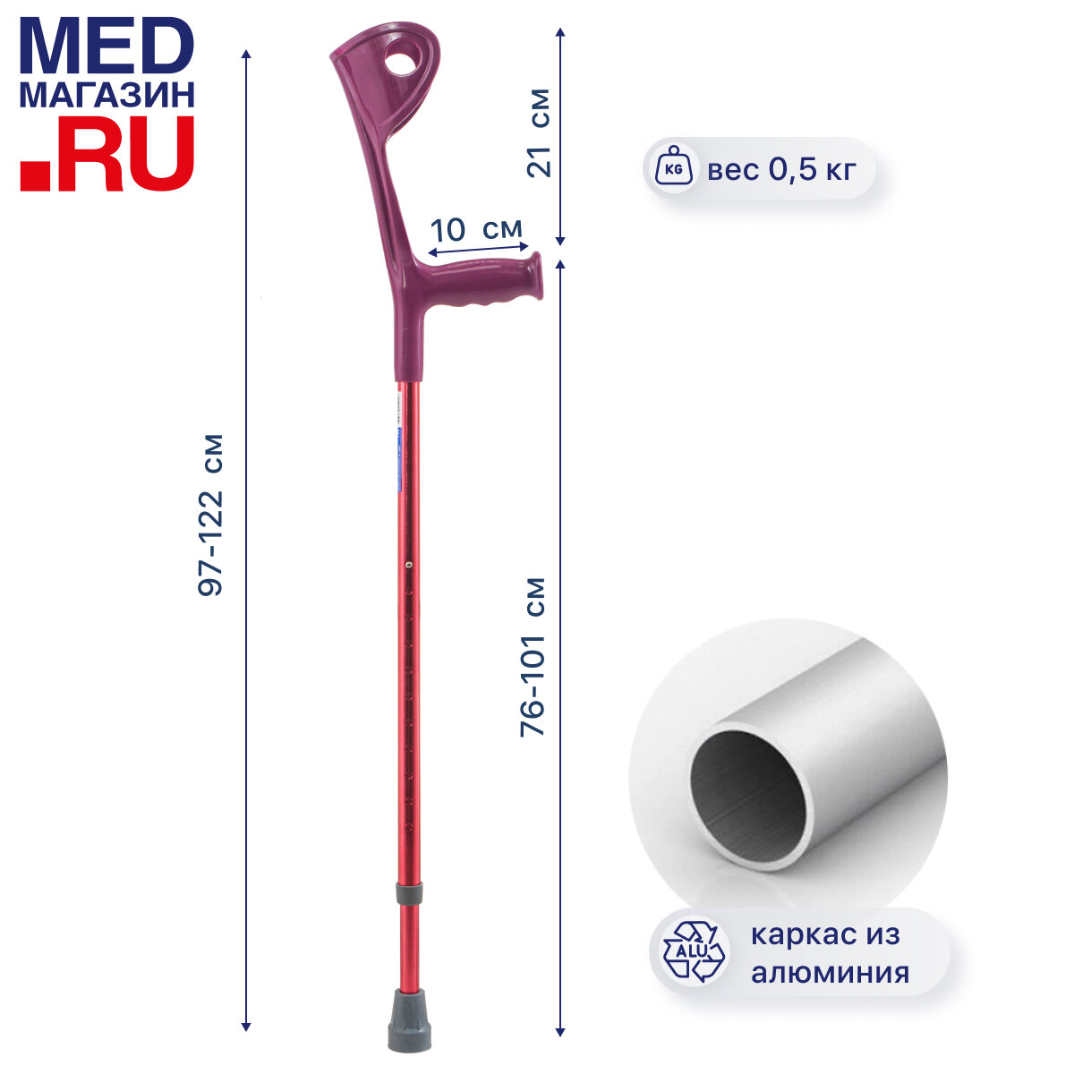 Купить Костыль локтевой под рост 150-200 см опорный канадка с опорой под локоть Евростиль 10079 взрослый цвет бургунди