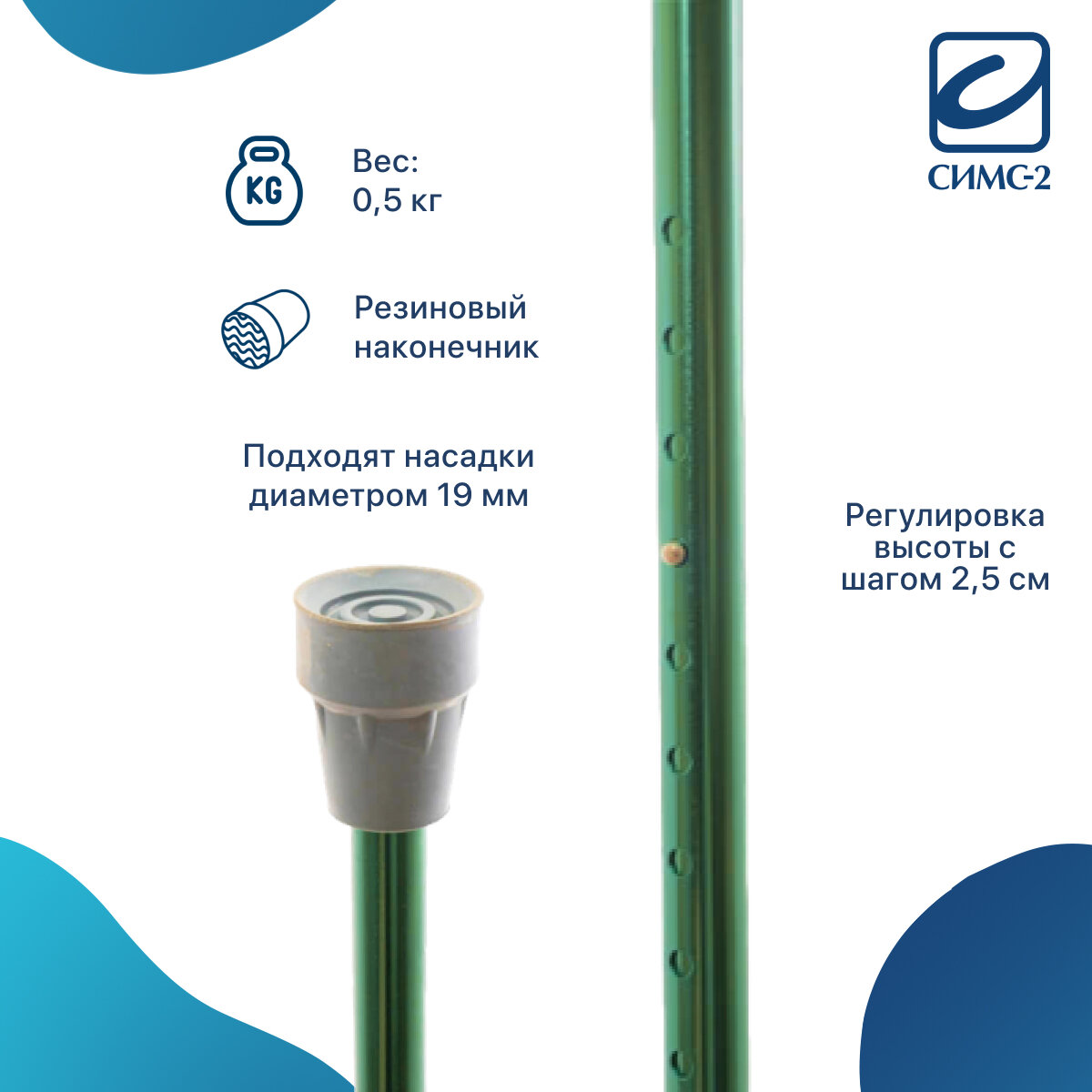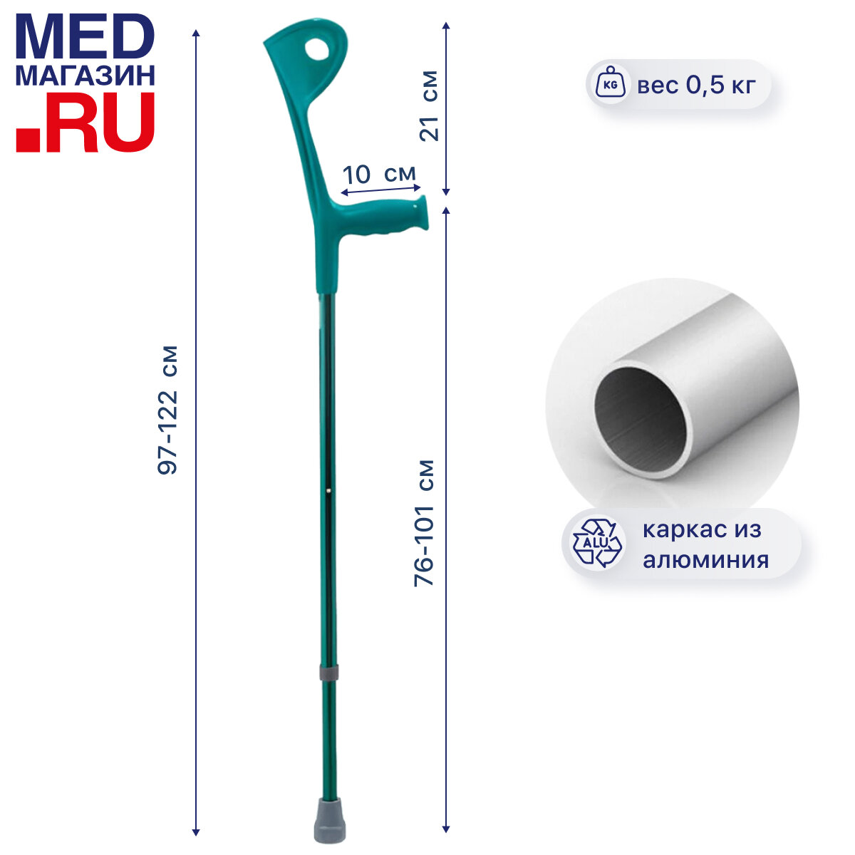 Купить Костыль локтевой под рост 150-200 см опорный канадка с опорой под локоть Евростиль 10079 взрослый зеленый