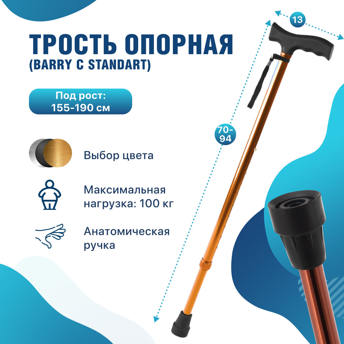 СохранитьТрость опорная под рост 155-190 см для ходьбы для пожилых цвет бронза Т-образная ручка C Standart интересное: