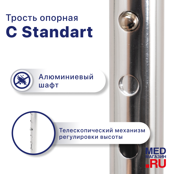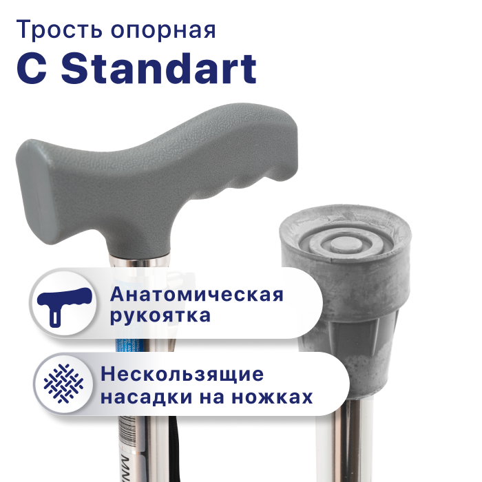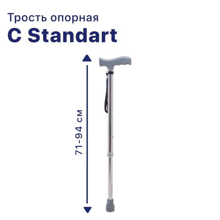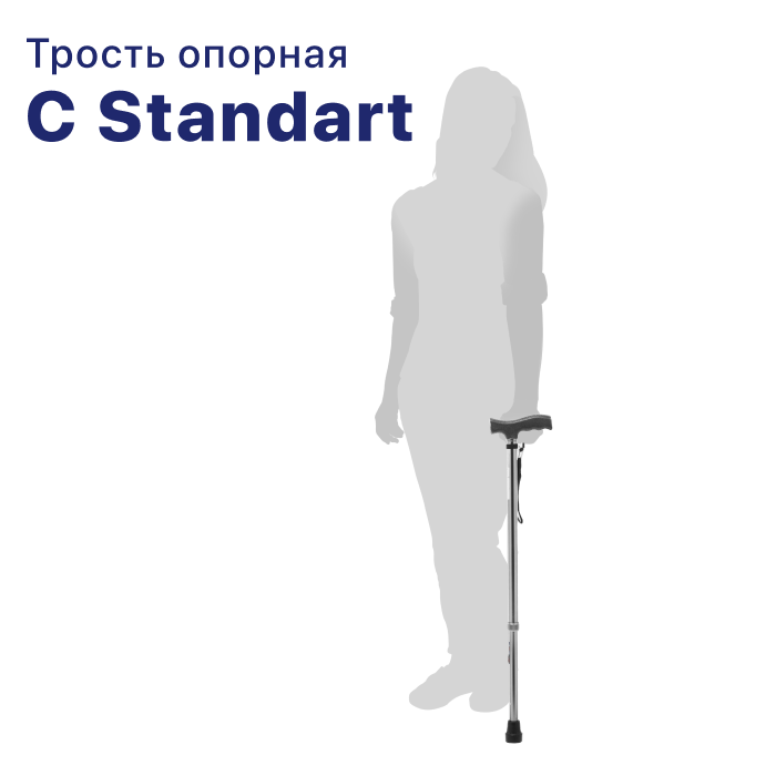 | Комплектация | Трость C Standart снабжена резиновым наконечником против скольжения и классической Т-образной рукояткой. |