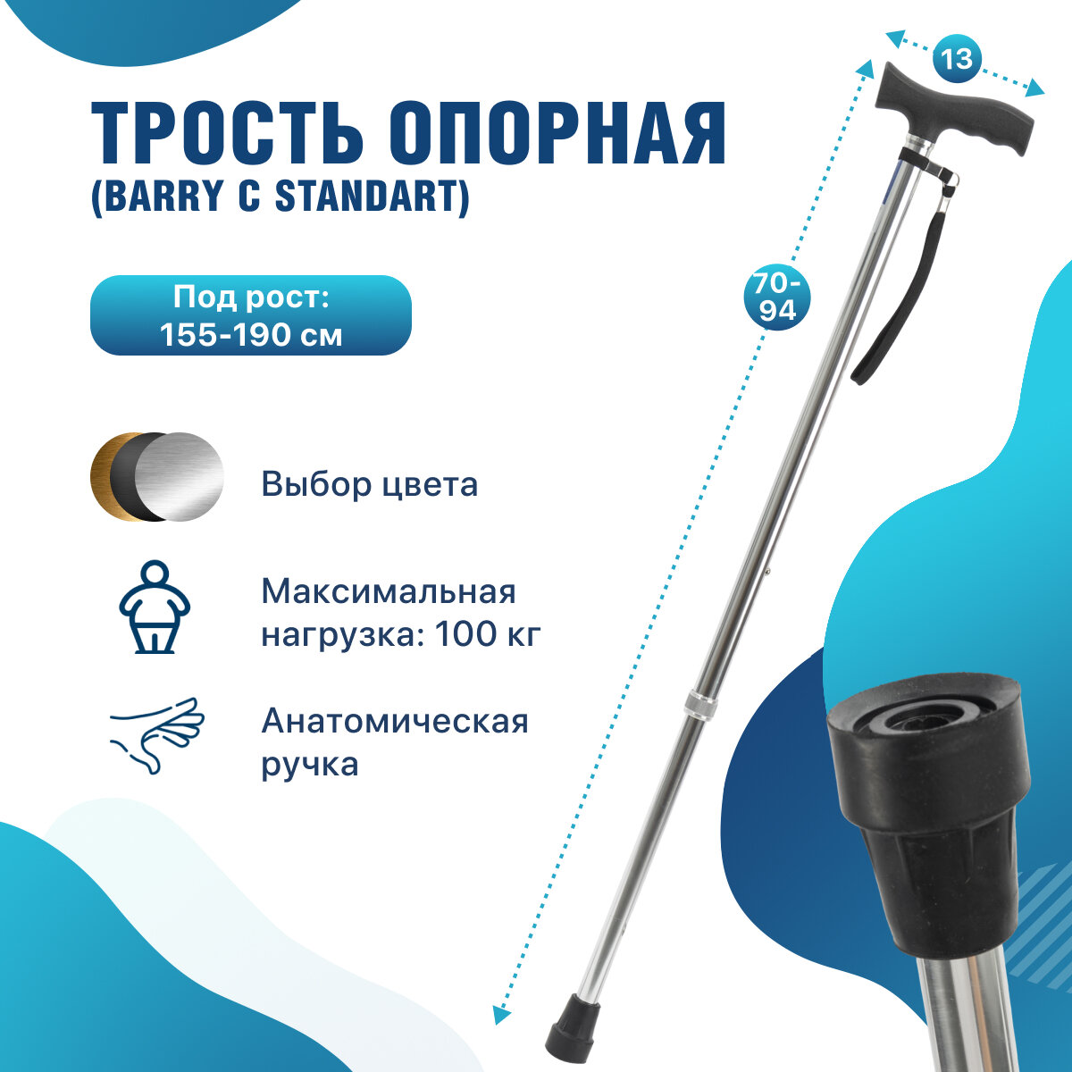Купить Трость опорная под рост 155-190 см для ходьбы для пожилых цвет хром Т-образная ручка C Standart