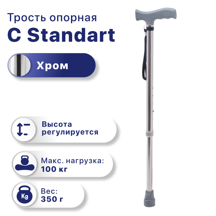 Трость опорная C-Standart с УПС, регулировка высоты хром