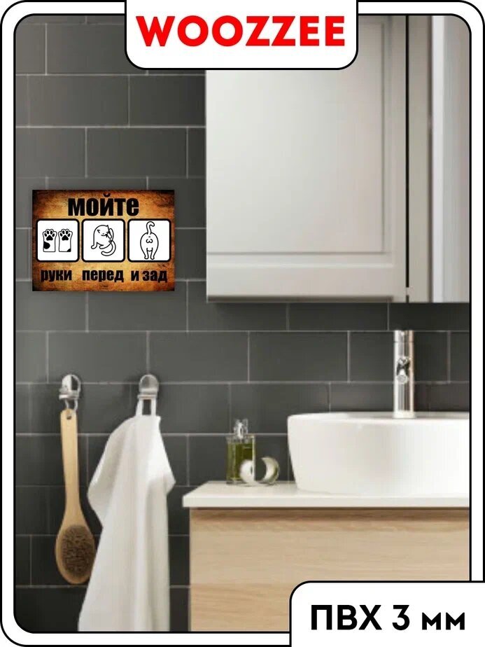 Табличка на дверь Woozzee "Мойте руки перед и зад - котики" (гор.) / табличка / таблички интересное: