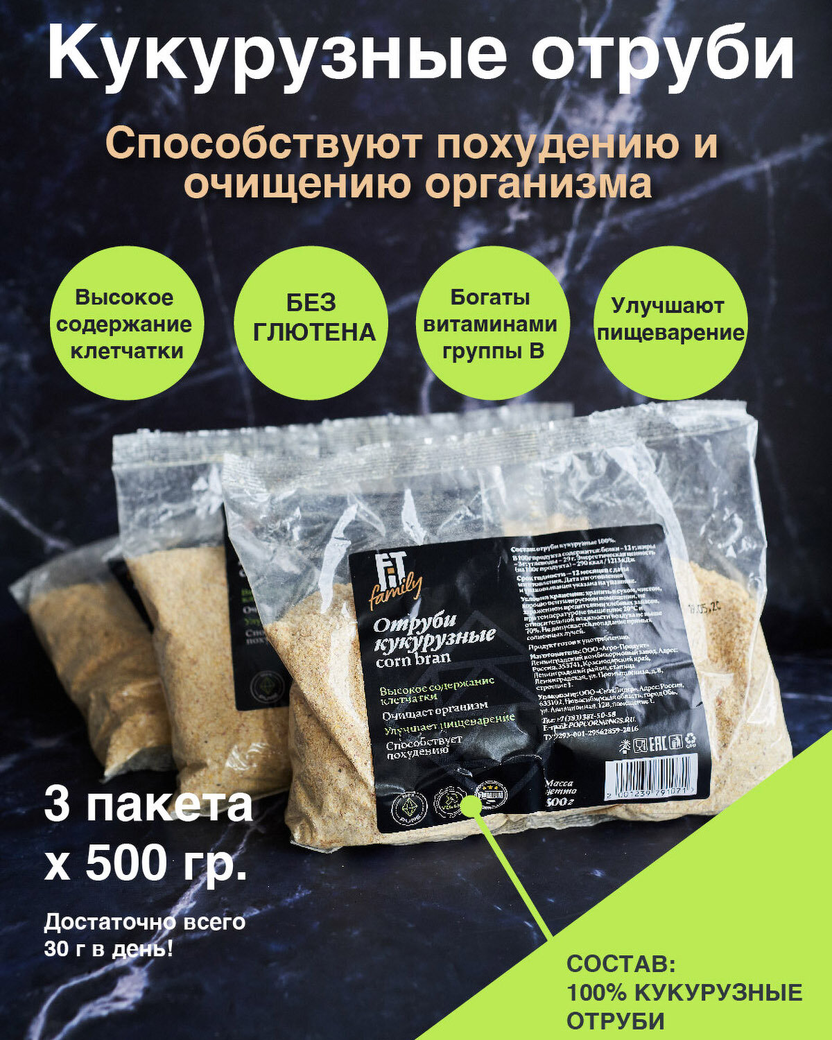 | Состав | отруби кукурузные 100% |