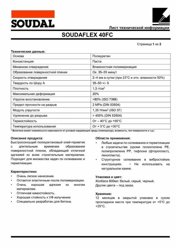 Ниже Вы можете прочитать отзывы на Клей-герметик полиуретановый универсальный Soudal Soudaflex 40 FC (600мл) коричневый, ознакомится с подробными характеристиками, посмотреть интересные обзоры и фотографии на Клей-герметик полиуретановый универсальный Soudal Soudaflex 40 FC (600мл) коричневый.