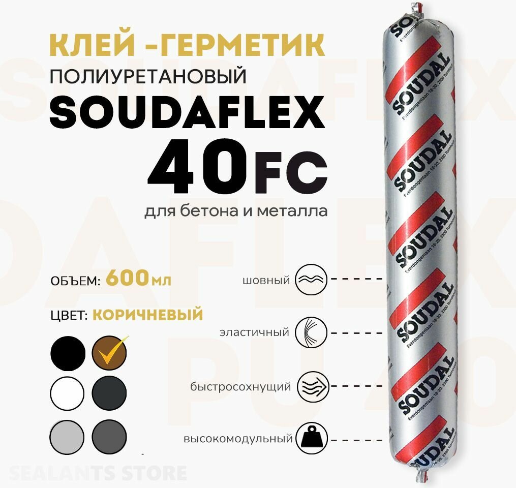 Soudaflex 40 FC полиуретановый клей-герметик для бетона и металла, коричневый, 600 мл