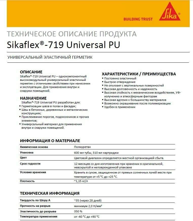 Ниже Вы можете прочитать отзывы на Полиуретановый эластичный универсальный герметик Sikaflex-719 Universal PU Construction, 300 мл, бежевый, ознакомится с подробными характеристиками, посмотреть интересные обзоры и фотографии на Полиуретановый эластичный универсальный герметик Sikaflex-719 Universal PU Construction, 300 мл, бежевый.