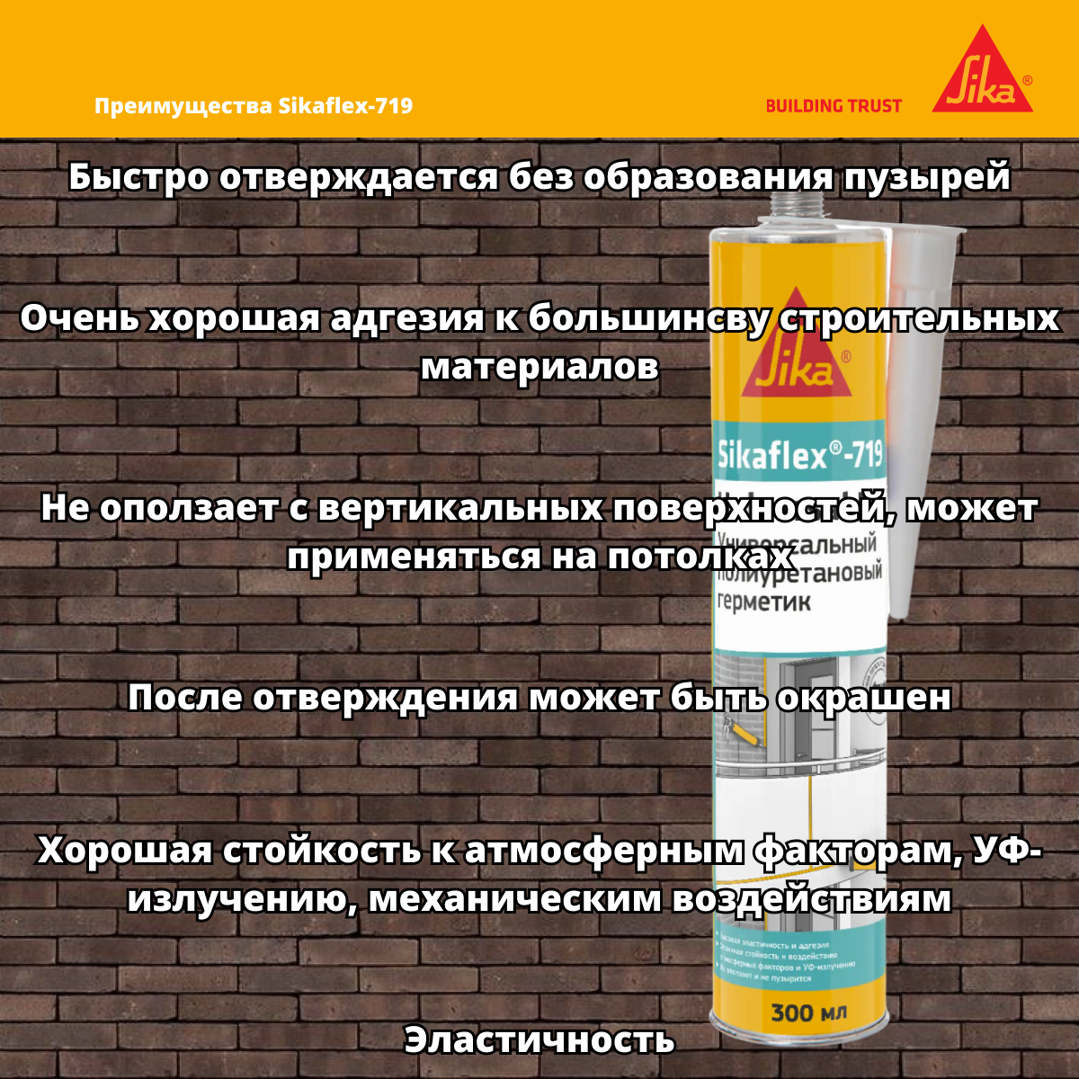 СохранитьПолиуретановый эластичный универсальный герметик Sikaflex-719 Universal PU Construction, 300 мл, бежевый интересное: