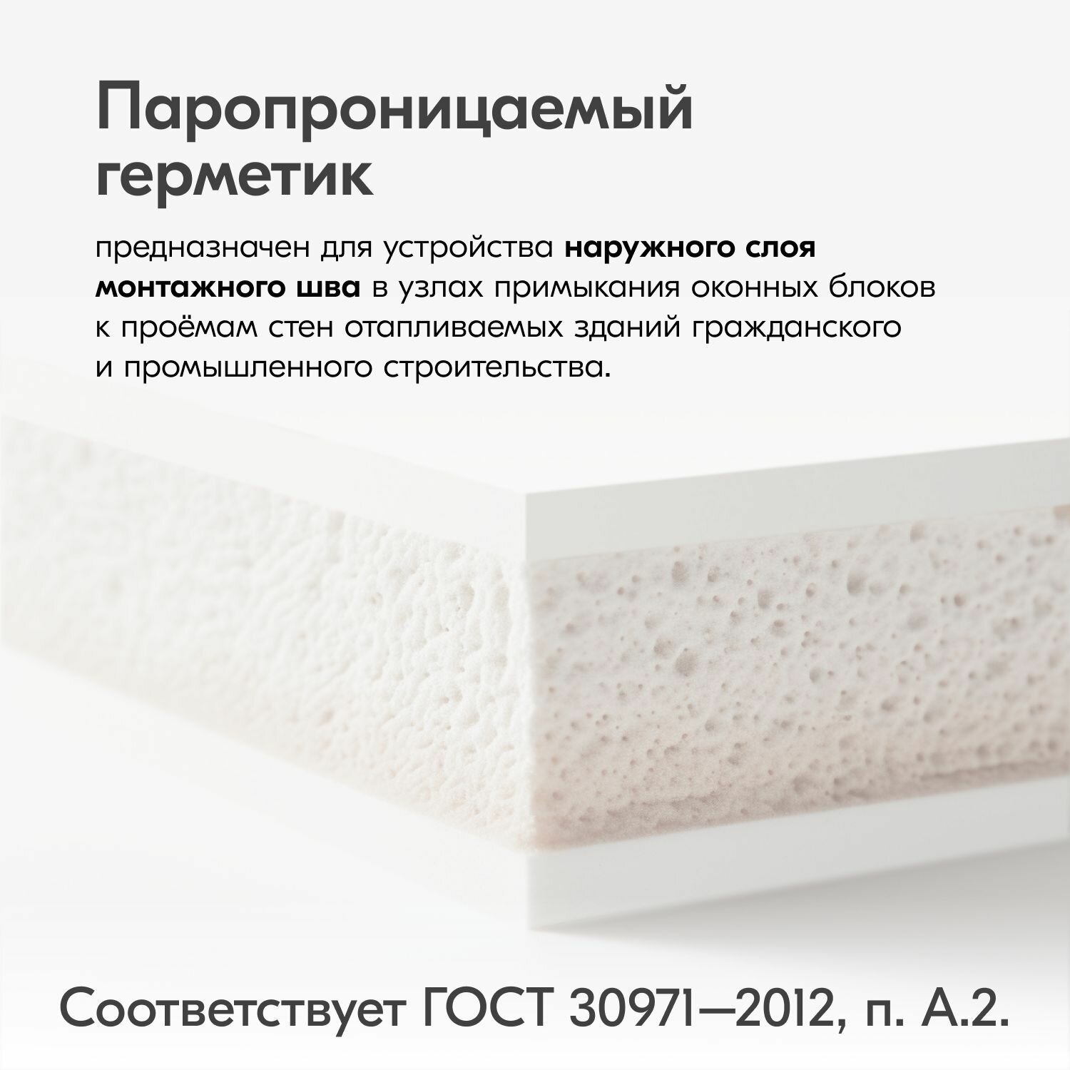 Герметик акриловый KUDO PROFF, наружный, паропроницаемый шовный, для монтажной пены при монтаже окон, SMK-351, 280 мл, белый интересное: