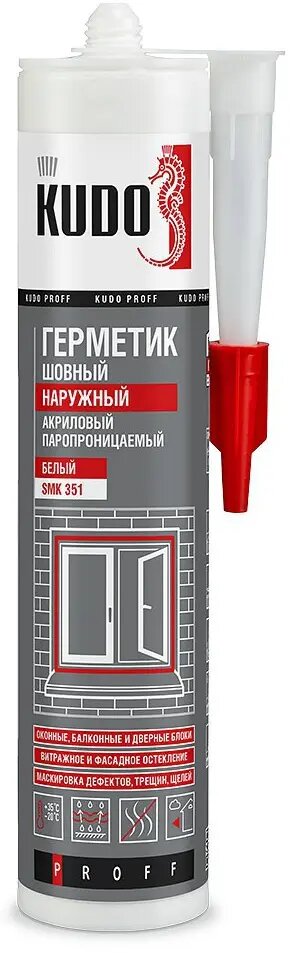 Купить Герметик акриловый KUDO PROFF, наружный, паропроницаемый шовный, для монтажной пены при монтаже окон, SMK-351, 280 мл, белый
