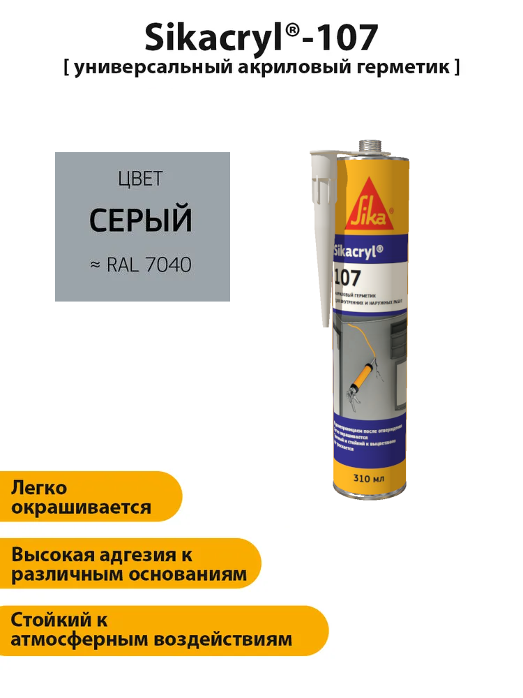 Универсальный акриловый герметик серый Sikacryl-107 300мл интересное: