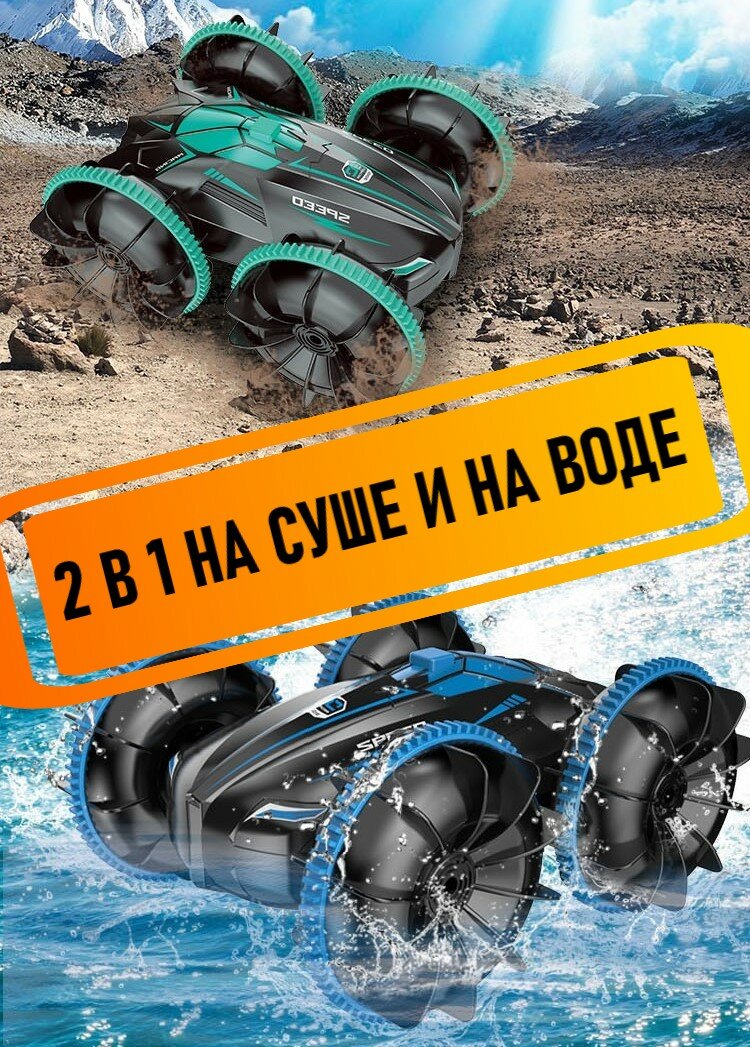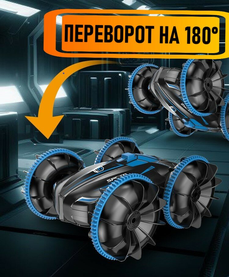 Машинка Амфибия перевертыш синяя, водонепроницаемая на радиоуправлении интересное: