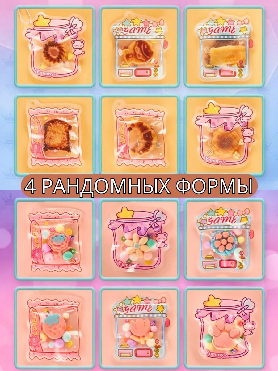 Сквиш вафля антистресс с блестками, слайм ,с бантиком