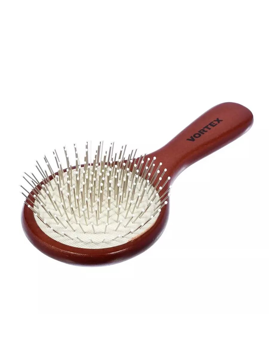 Расческа деревянная, массажная /для волос/с ручкой/для укладки 19,5х9,5х3,5 см, "круг", с металлическими зубчиками "VORTEX"